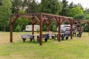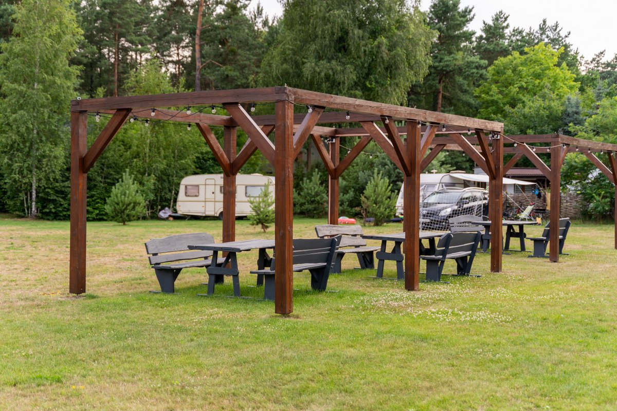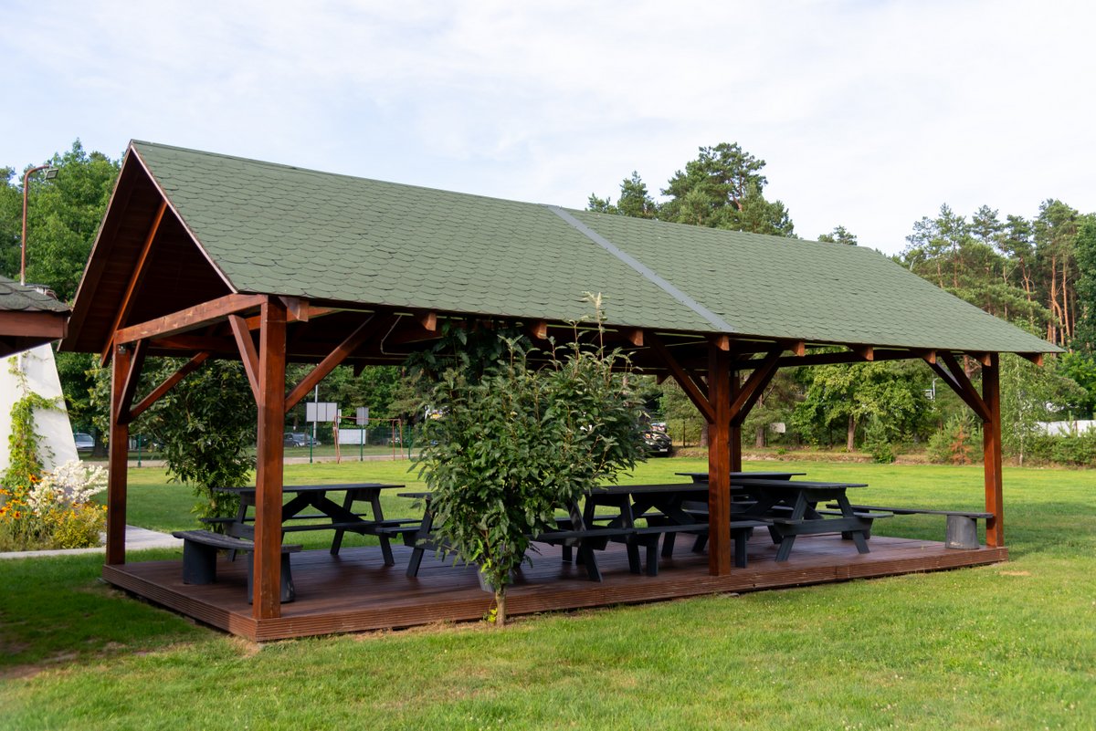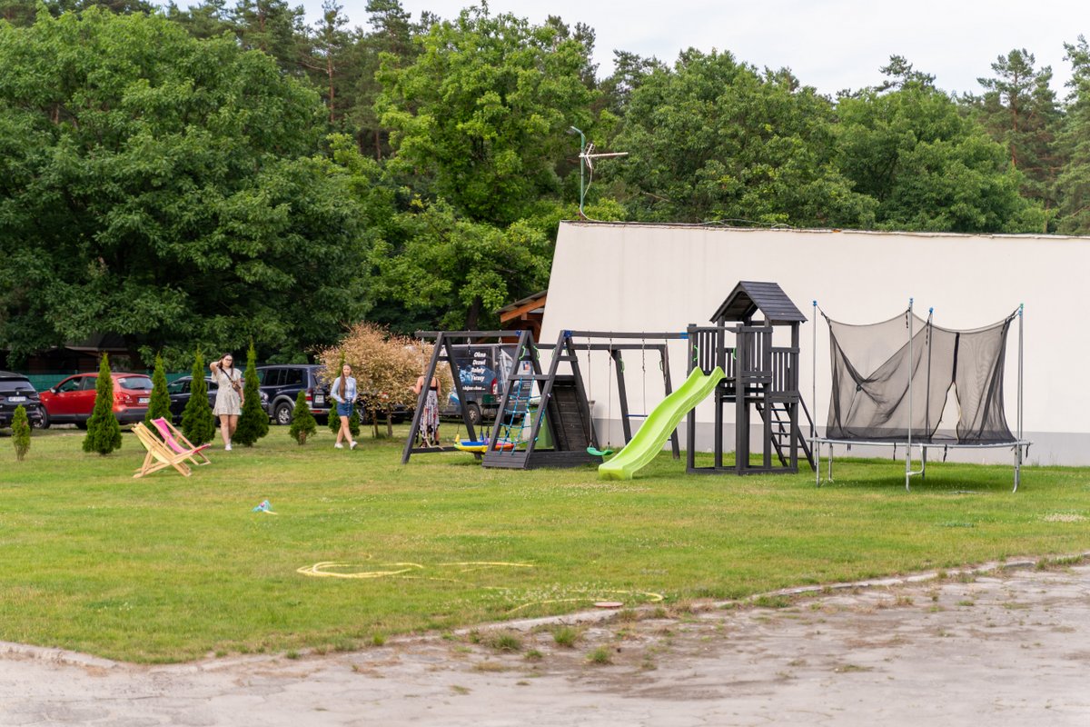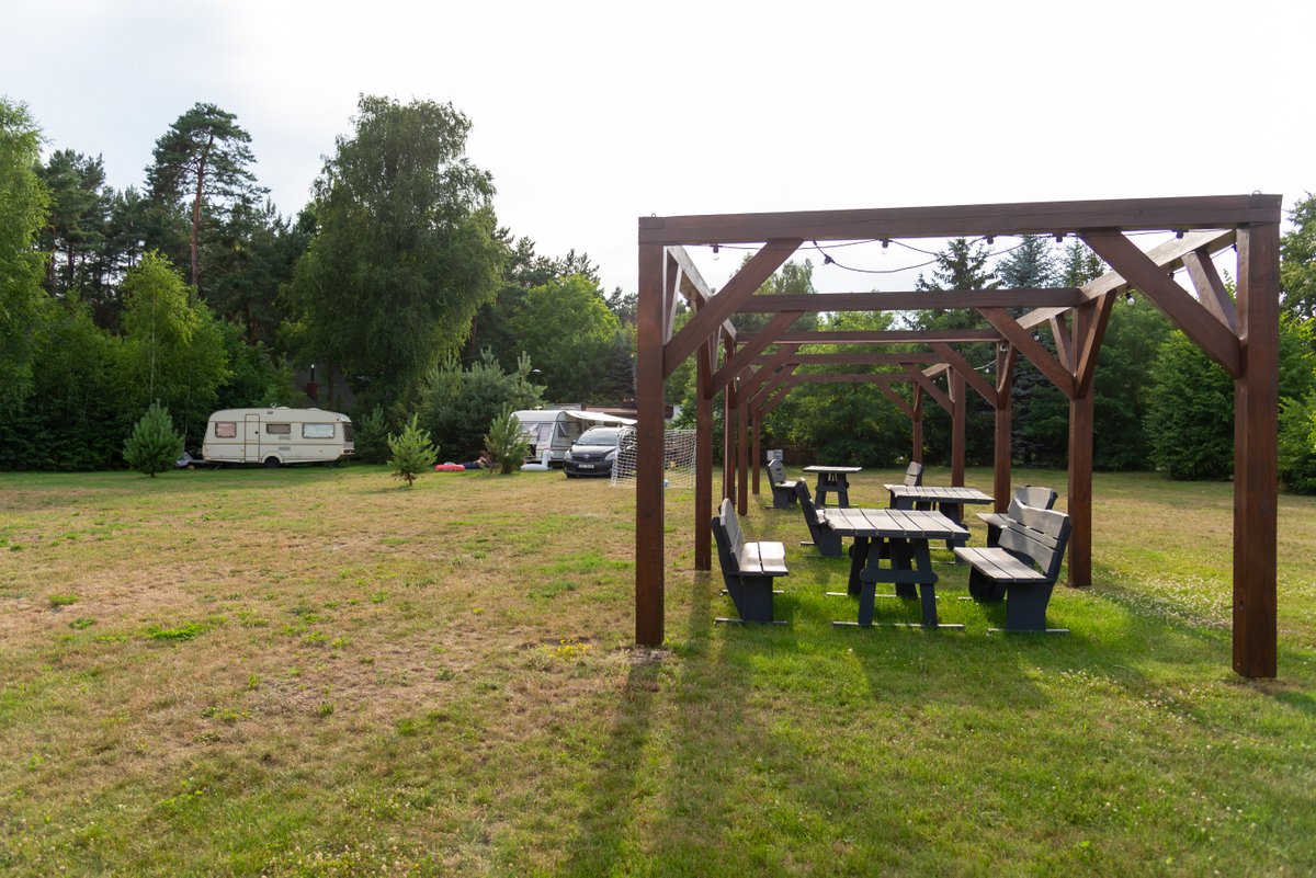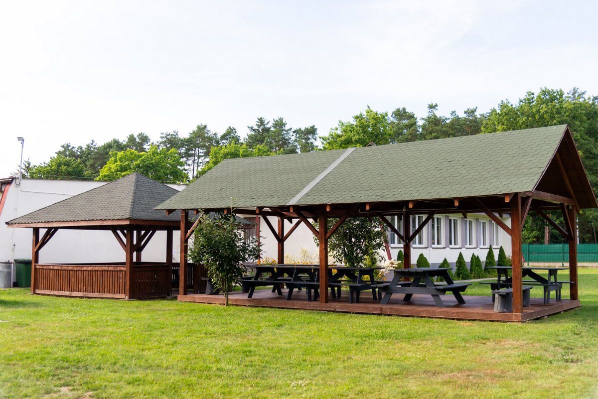 Na terenie ośrodka w zacisznym miejscu znajduje się altanka, gdzie można mile spędzić popołudnie przy grillu lub ognisku. Posiadamy duży ogrodzony plac parkingowy oraz miejsce na pole namiotowe i campingowe, ponad to jest możliwość spędzić wolny czas relaksując się na trawniku przy piłce nożnej lub siatkówce.